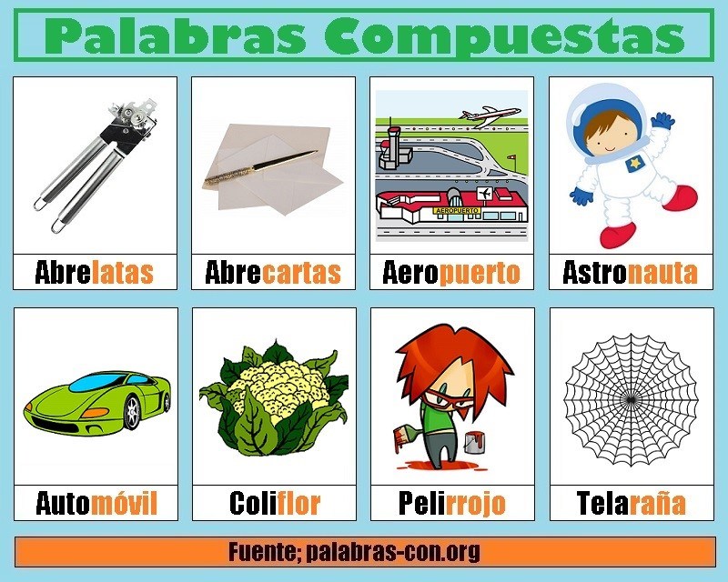 Completa esta palabra simple para que sea compuesta. Conjunto de veinte actividades interactivas para aprender a diferenciar las palabras simples de las compuestas y a formar palabras . Las palabras compuestas son las palabras que se han formado uniendo dos o más . Estas palabras pueden ser sustantivos, adjetivos, verbos, adverbios… y distintas combinaciones entre dichas . Las palabras compuestas se forman por la unión de dos o más palabras.